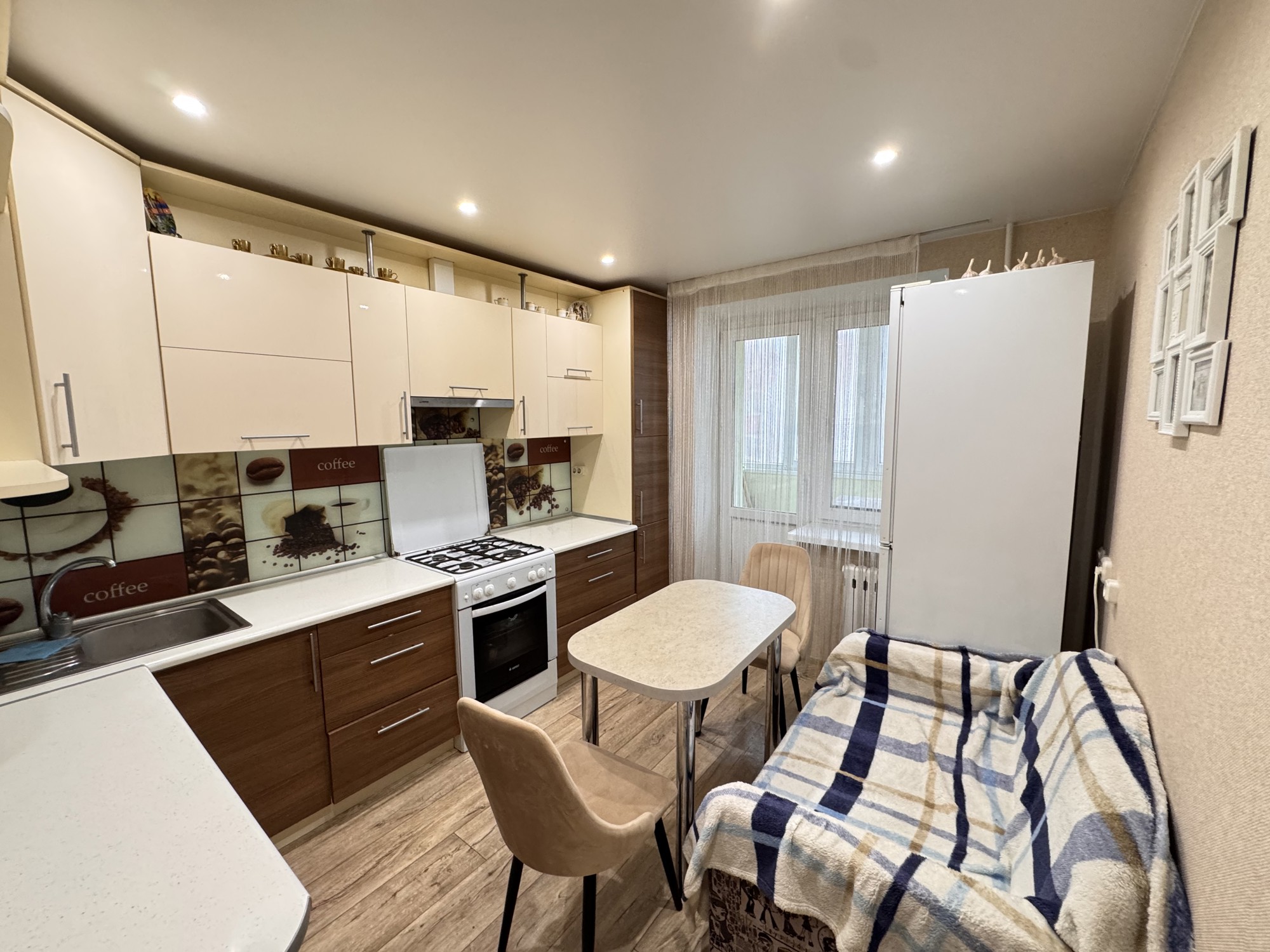 Планировка: Очень удобная. Просторная комната и большая кухня, раздельный санузел. В прихожей есть ниша, где установлен шкаф. Удобная лоджия.