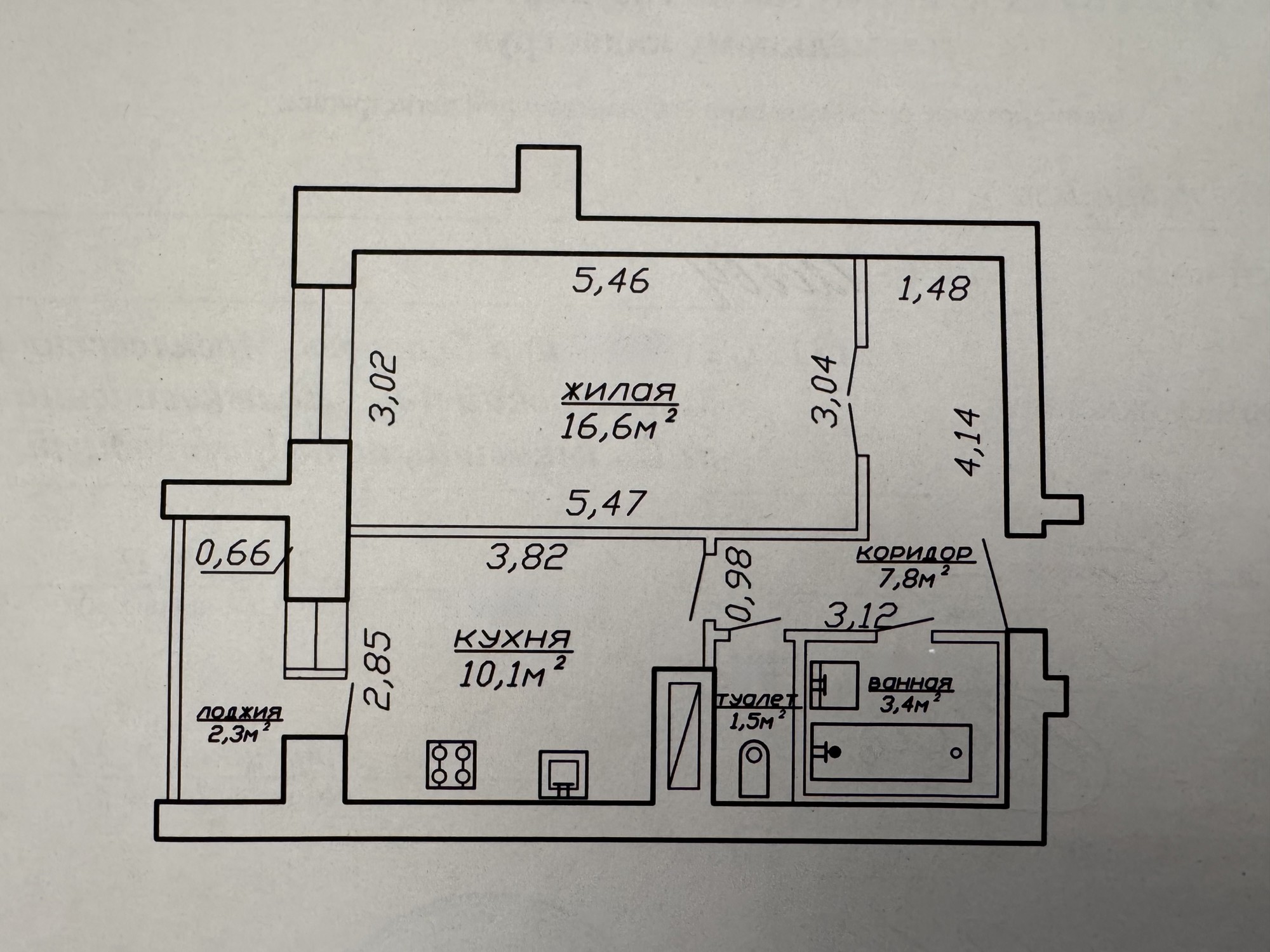 · общая — 39,4 кв. м (по СНБ — 41,7 кв. м);