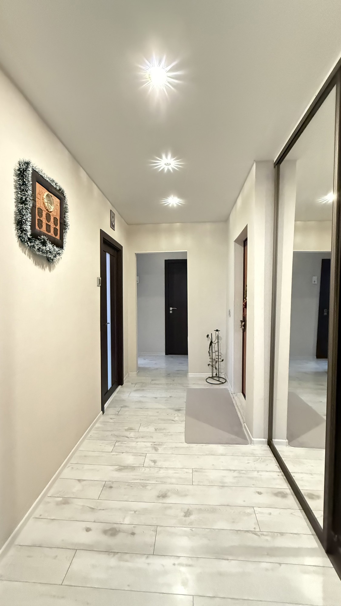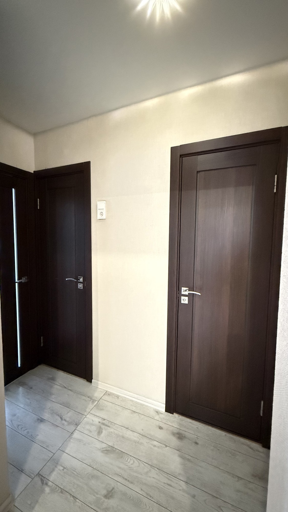 Квартира с ремонтом, на полу уложен ламинат. Установлены окна ПВХ, входная металлическая дверь, межкомнатные двери массив, потолки натяжные.