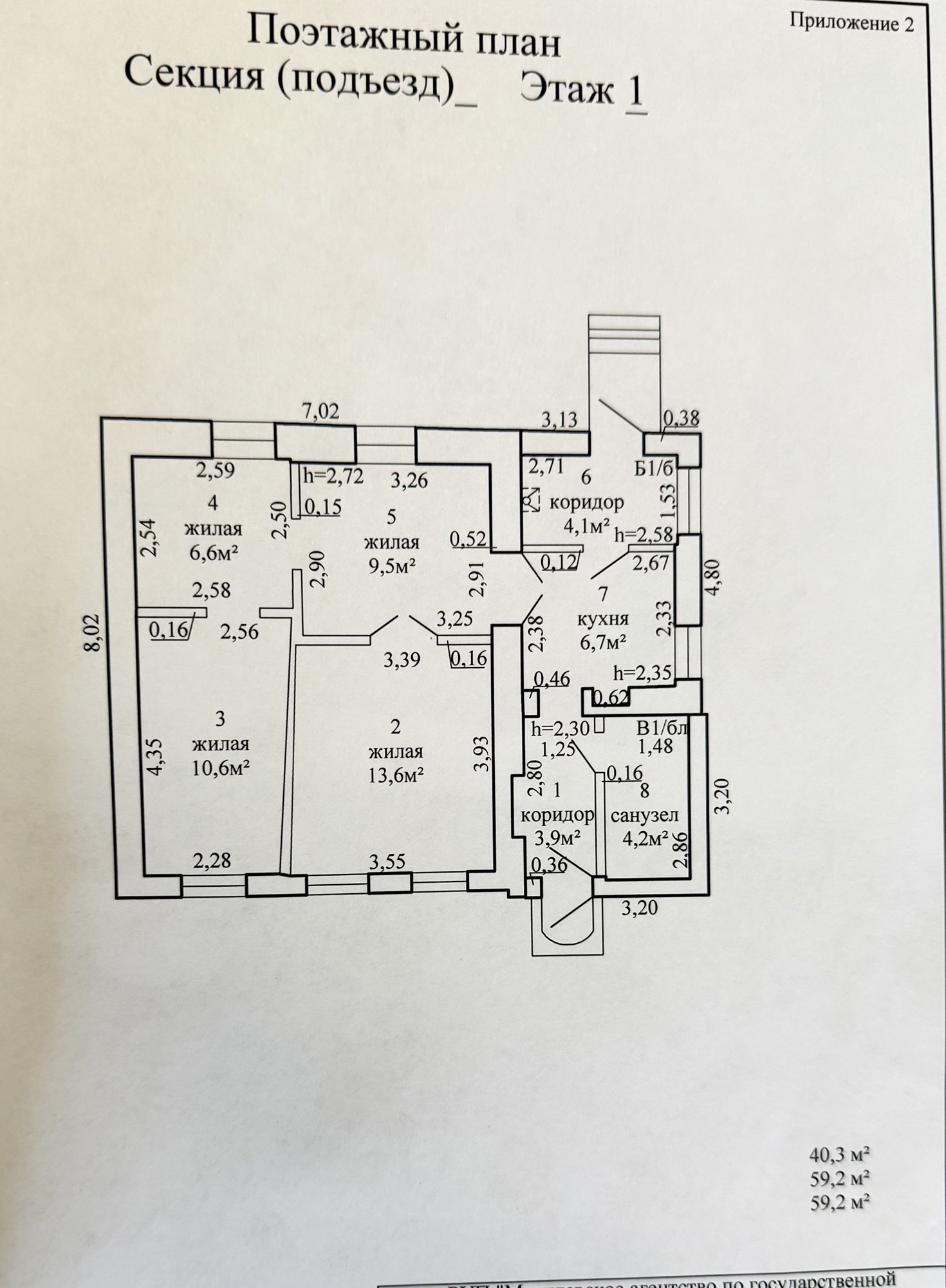 Общая площадь дома 59,2 кв.м. - Жилая площадь 40,3 кв. м. - Кухня -6,7 кв.м.